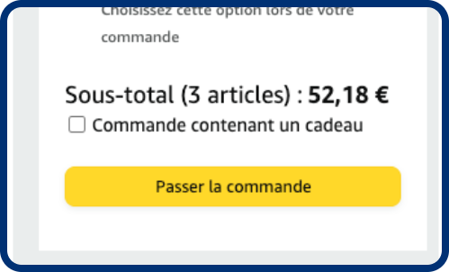 Ajoutez ce dont vous voulez acheter dans votre panier Amazon. Appuyez ensuite sur : « Passer la commande ».